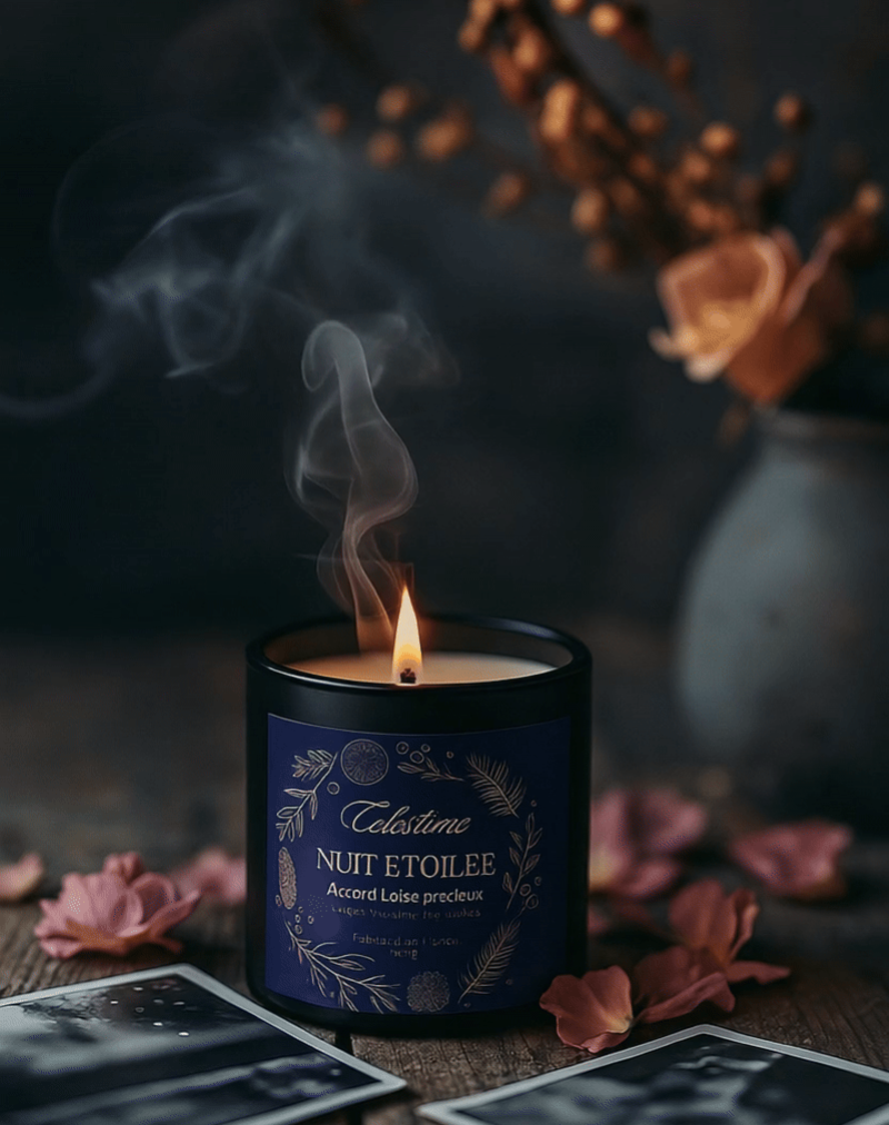 Plongez dans l'univers mystérieux de Nuit Étoilée, une bougie parfumée qui évoque la magie des nuits sous les étoiles. Cette composition raffinée associe le cèdre boisé, la mandarine fraîche et l'encens sacré pour créer une ambiance apaisante et contemplative.