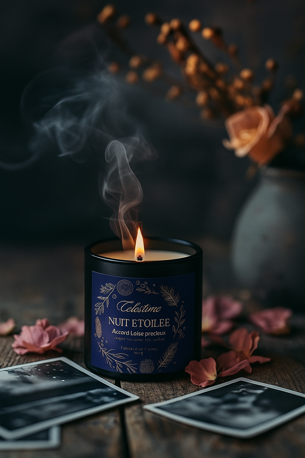 Carte du ciel bleu profond, comme le velours nocturne + Bougie "Nuit Étoilée" — Accord boisé précieux