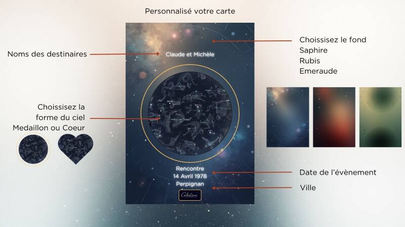 📦 Coffret cadeau complet • Carte céleste • Certificat • Carte d'accompagnement • Message personnalisé