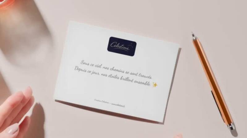 📦 Coffret cadeau complet • Carte céleste • Certificat • Carte d'accompagnement • Message personnalisé